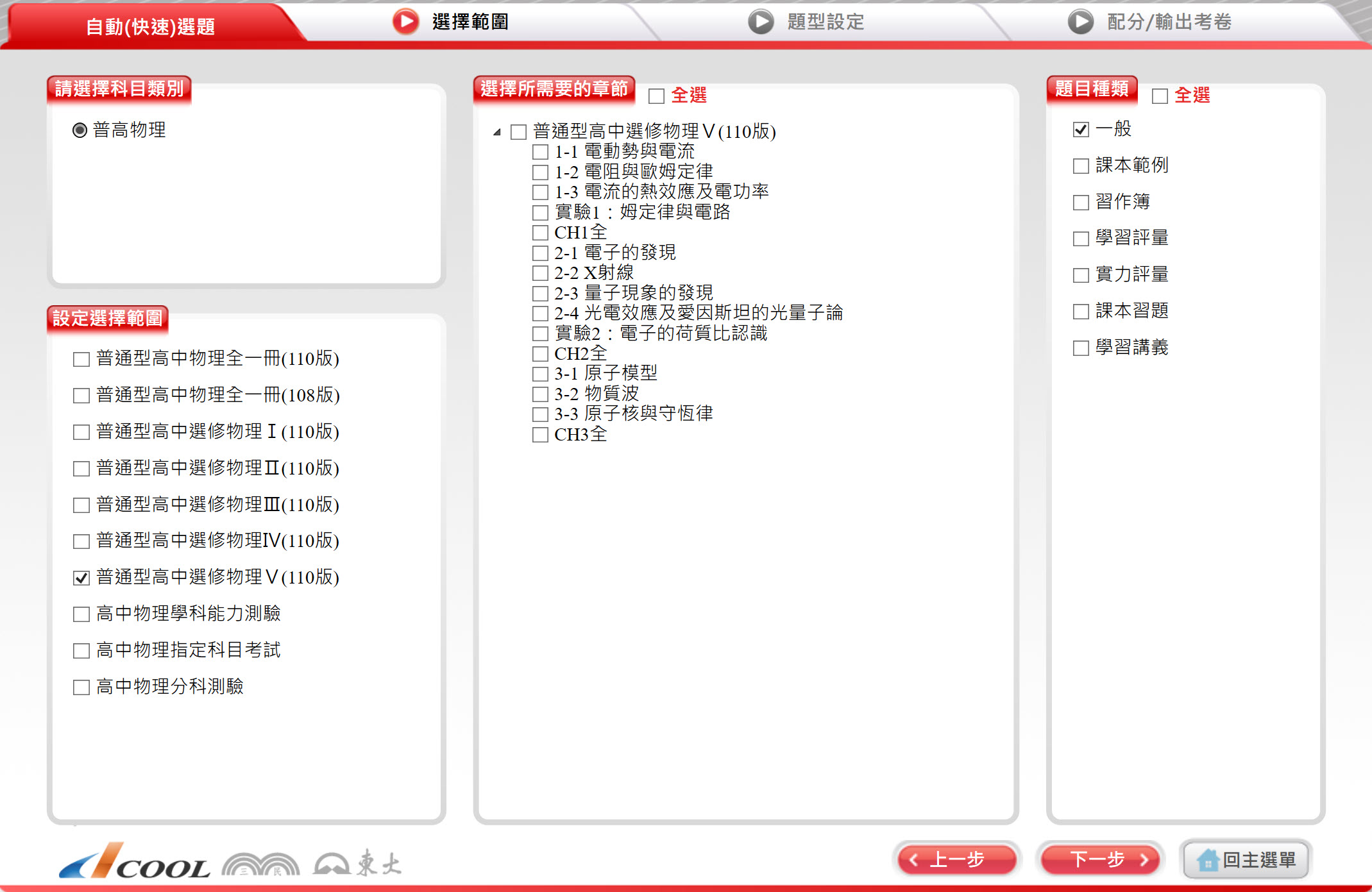 112學年上學期 高中命題光碟 三民版 物理科(全、選修I、選修II、選修III、選修IV、選修V)(108課綱)題庫光碟